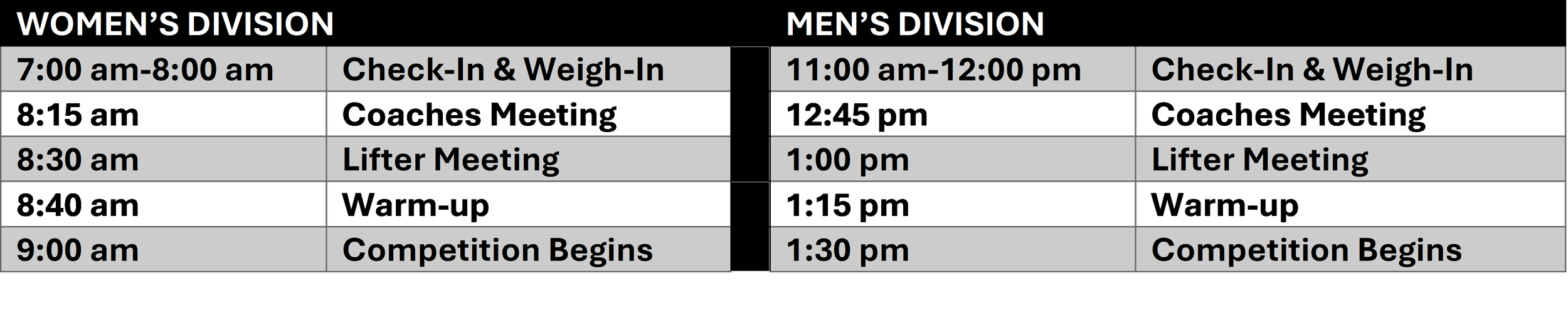 Doors open for lifters & general admission at 6:30 am.